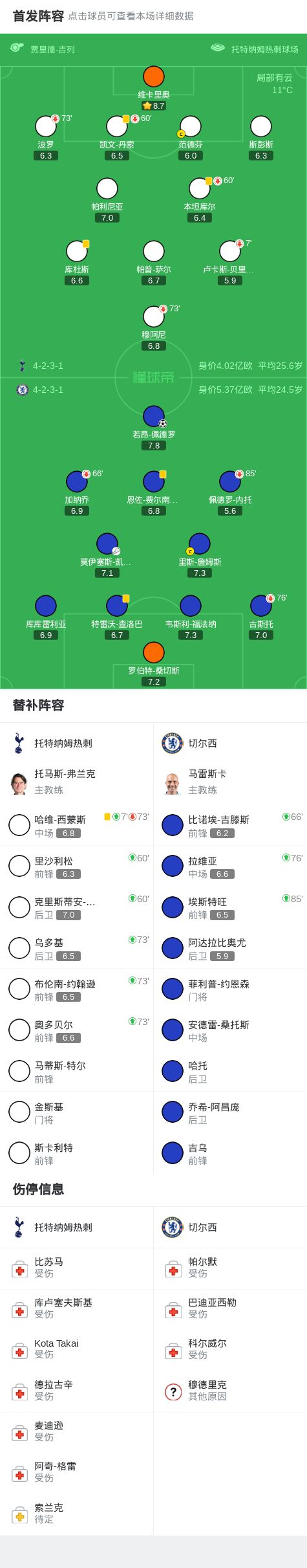 北京时间11月2日,英格兰足球超级联赛第10轮,托特纳姆热刺主场迎战切尔西。上半场,凯塞多抢断后助攻,若昂-佩德罗破门。下半场最后时刻,吉滕斯和若昂-佩德罗相继错失良机。全场比赛结束,切尔西1-0客场击败热刺。